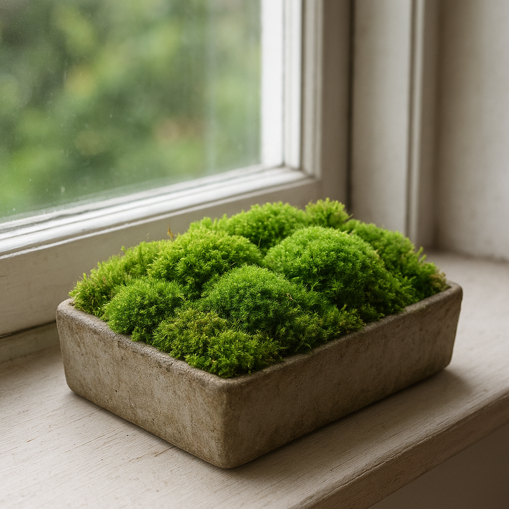 - Redukcja hałasu – dzięki swojej strukturze mech działa dźwiękochłonnie, co jest cenne w pomieszczeniach o dużej akustyce.